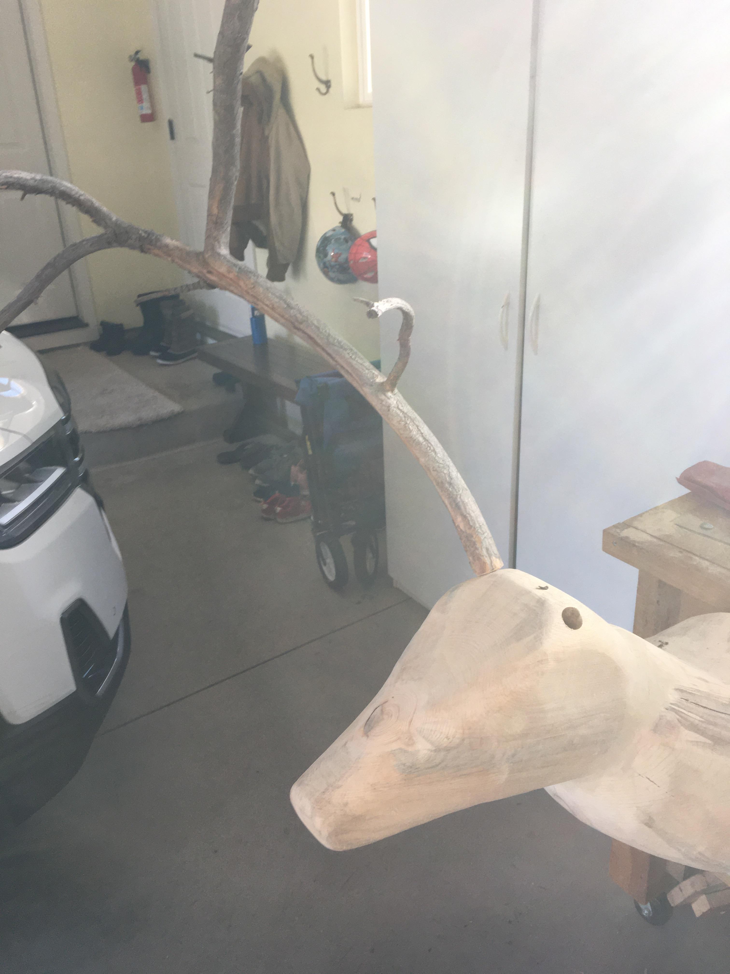 My neighbor, being a hunter, had a great specimen of Mule deer, and he let me take pictures and measurements. Feel free to use these photos for your reference. If you are not using a block of wood that will allow you the same proportions, then you will need to use photos to convert the real deer head measurements to the respective measurements that will fit within your wood. I used a couple sections of Ponderosa that let me keep the proportions, which meant less math (yay!).