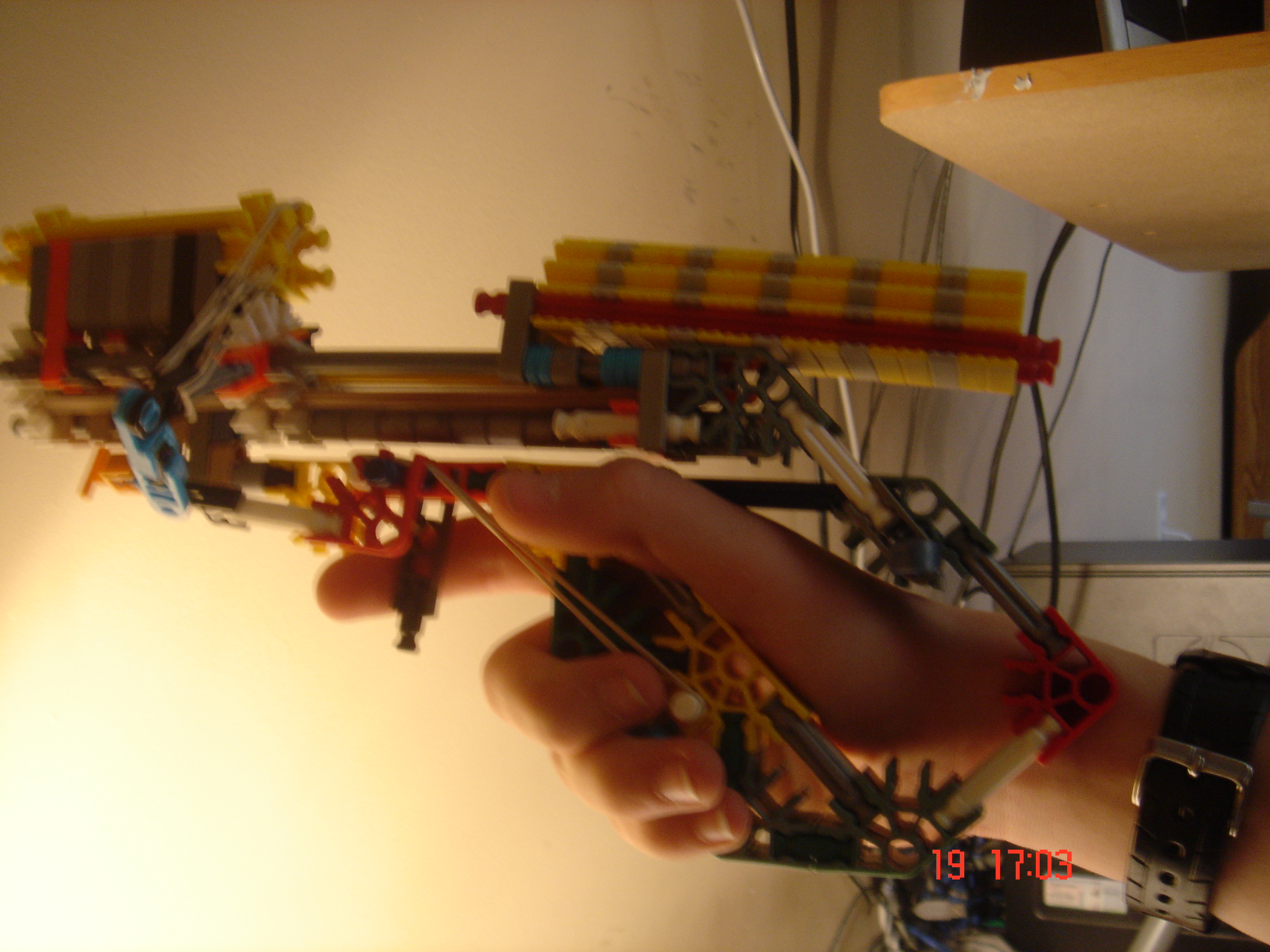 The best pistol ever. It's got a slide, A mag, and a true trigger. It has all the primary features of a shifle, in a tiny package. Plus it shoots pretty far and is easy to make. In other words, the beginner's gun to end all beginner guns. And Only 190 Pieces.